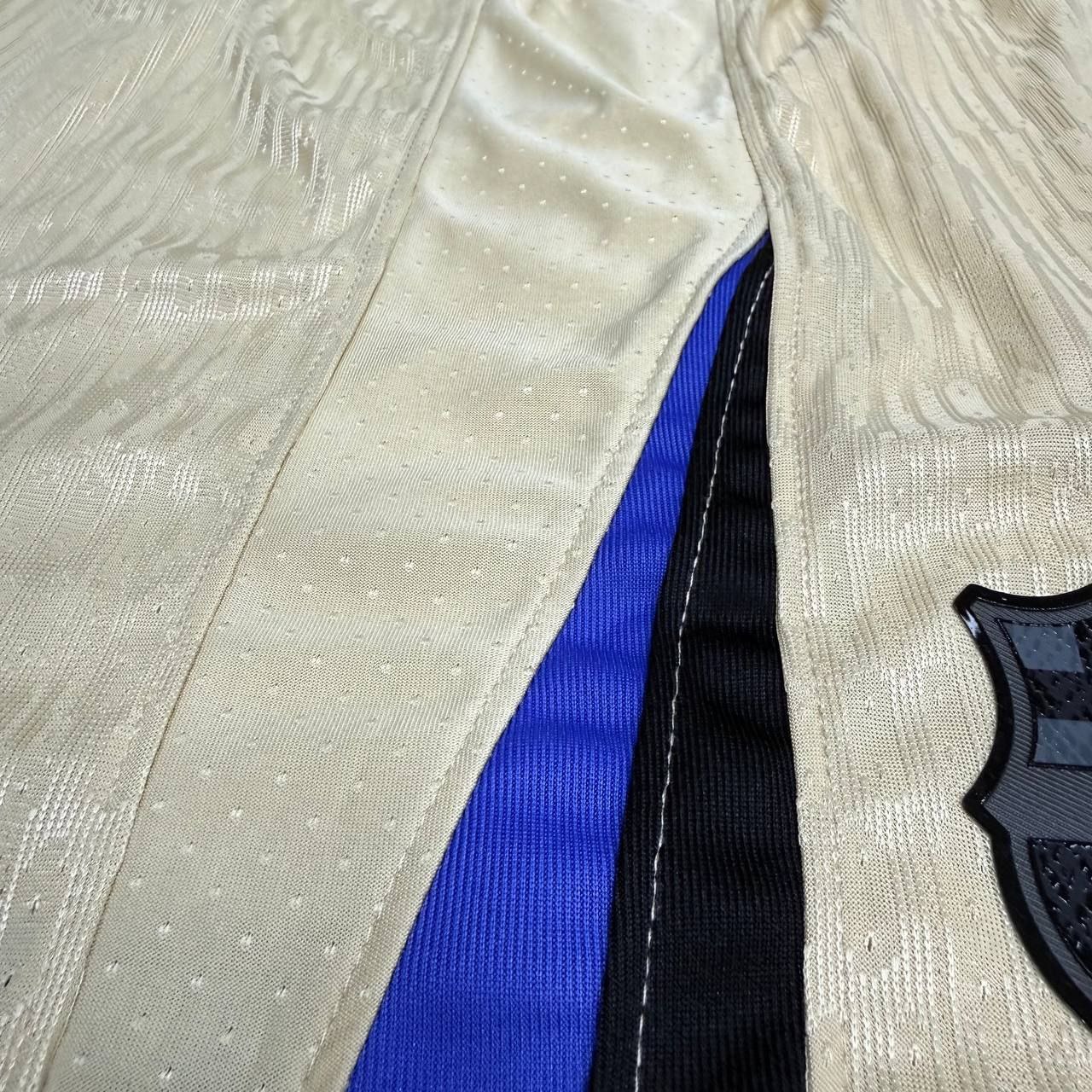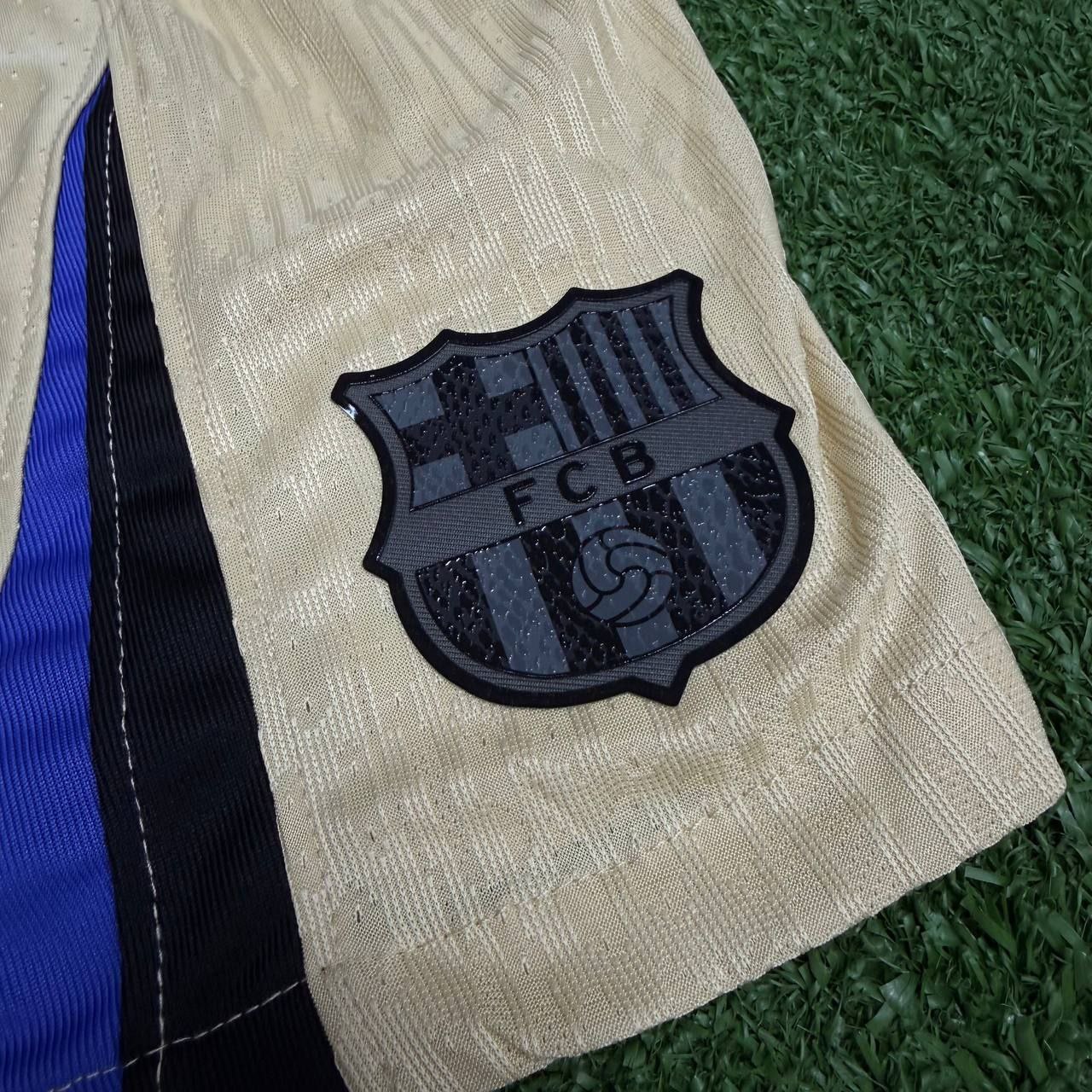 شورت کیت دوم بارسلونا 2025-2026 با ترکیب رنگهای سنتی آبی و اناری طراحی شده که یادآور تاریخ غنی و فرهنگ باشگاه است. این شورت با پارچهای سبک و پیشرفته ساخته شده تا ضمن حفظ راحتی، بهترین عملکرد را برای بازیکنان فراهم کند. خطوط عمودی ظریف و جزئیات زرد رنگ در کنارهها، جلوهای مدرن و پویا به طراحی بخشیدهاند. لوگوی باشگاه و برند تولیدکننده با دقت و به صورت برجسته روی شورت قرار گرفتهاند، که نشاندهنده کیفیت بالا و اصالت محصول است.