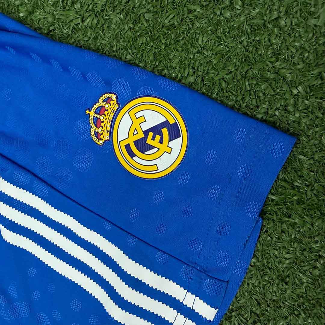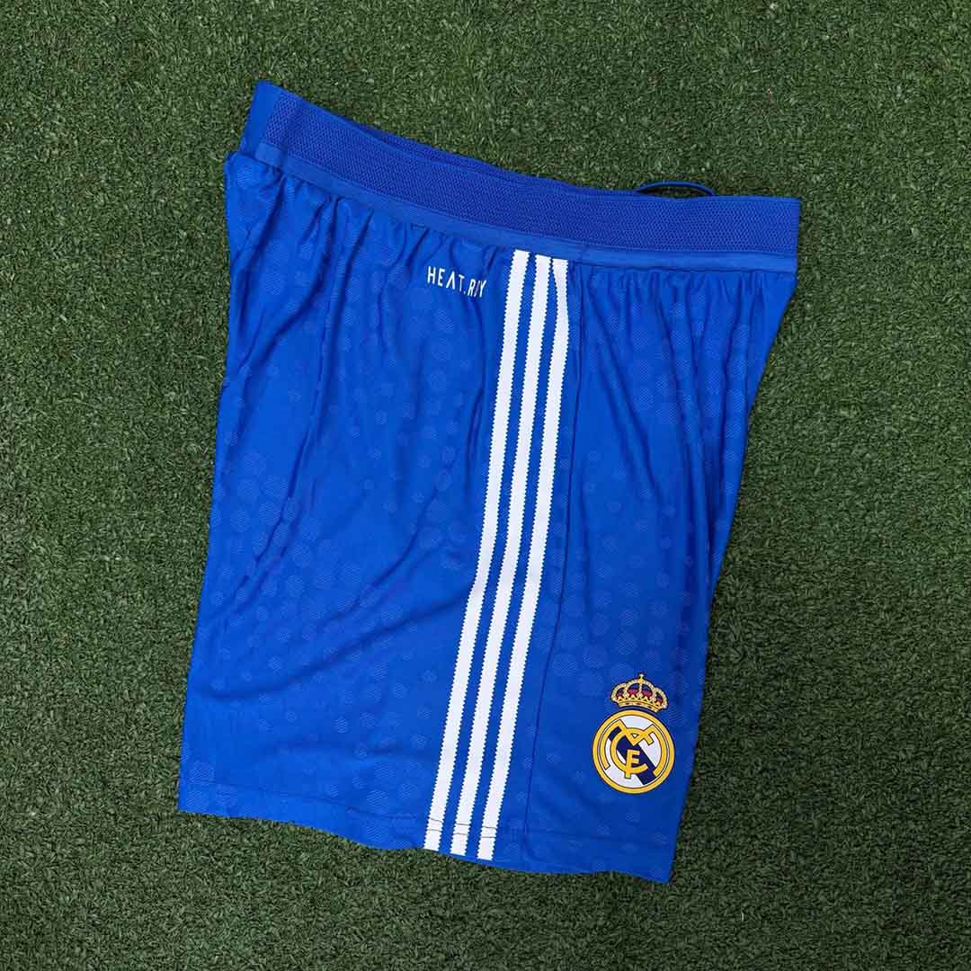 جزئیات طراحی شامل نوارهای سفید کلاسیک آدیداس در کنارهها و لوگوی Trefoil در جلوی شورت است که حالوهوایی نوستالژیک و در عین حال مدرن ایجاد میکند. ترکیب رنگ آبی و سفید، یادآور اصالت رئال مادرید و روح همیشه پیروز این باشگاه بزرگ است.