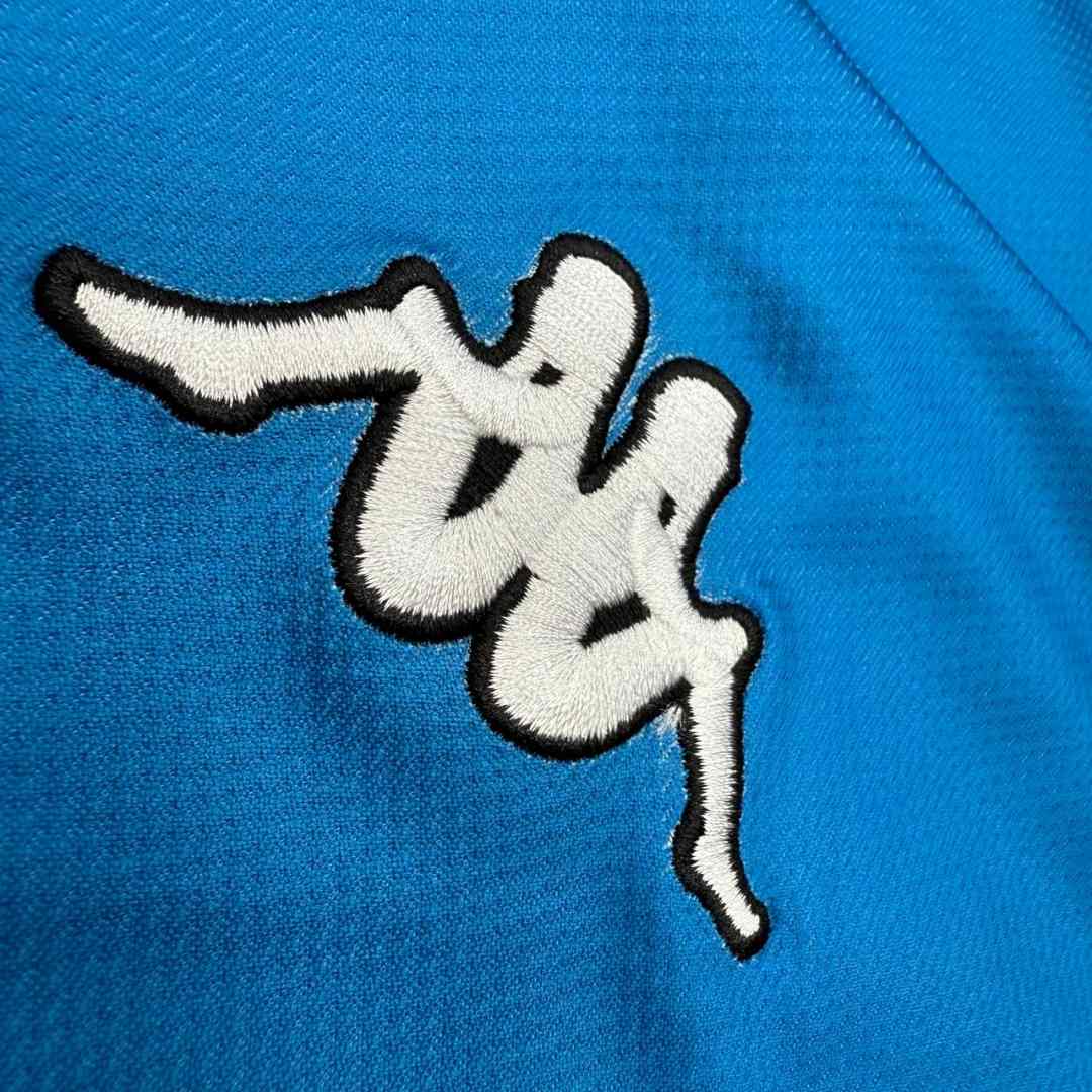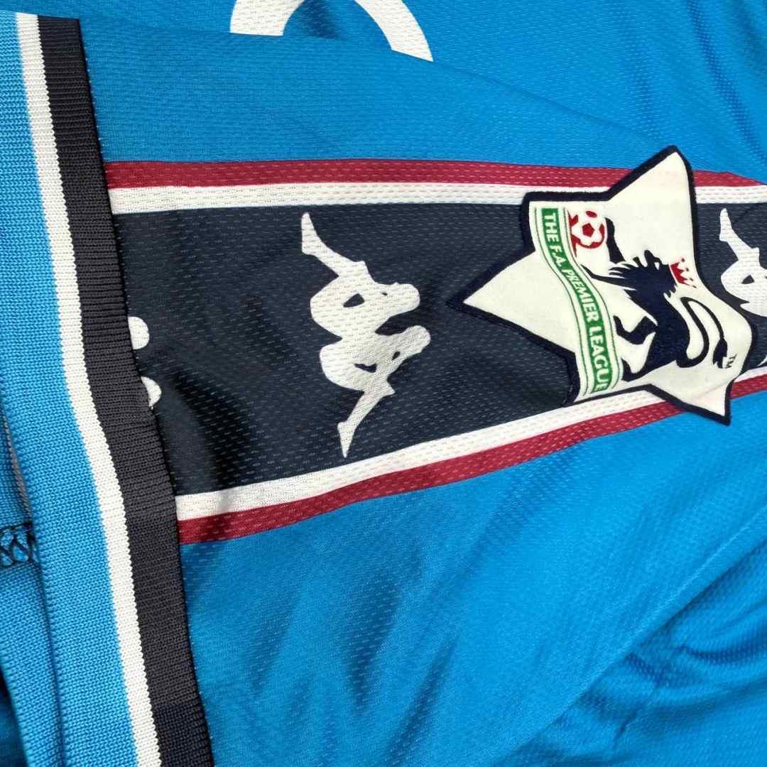 کیت اول منچسترسیتی 1998 با چاپ کین کالادزه طبق سنت دیرینه سیتیزنها با رنگ آبی آسمانی تولید شده است. همچنان که در قسمت آستینها شاهد تکرار لوگو کاپا در نوار سرمهای رنگ هستیم. در قسمت روی سینه هم لوگوهای سیتی و کاپا علاوه بر هویتی که به لباس داده است داده است و به جذابیت کیت افزوده است. اما یکی از مهم ترین بخش های این لباس مخصوص، پشت پیراهن است. چاپ اسم کین کالادزه به عنوان اسطوره گرجستانی منچستر سیتی با فونت مخصوص لیگ جزیره، طراحی لباس را کامل کرده است.