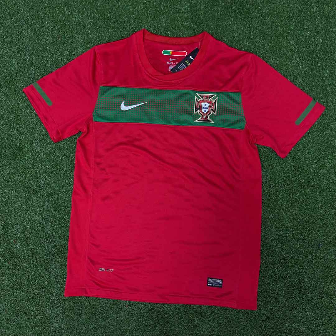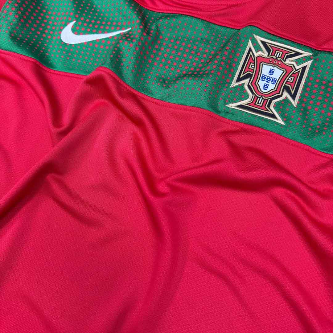 با کیت اول پرتغال 2010 نسخه پلیری، به روزهای درخشان فوتبال اروپا برگرد! 💪 این لباس افسانهای با طراحی قرمز کلاسیک و جزئیات سبز، نماد تعصب و افتخار تیم ملی پرتغاله 🇵🇹❤️