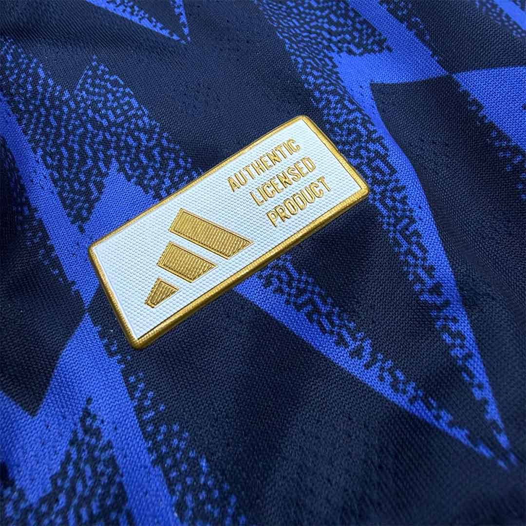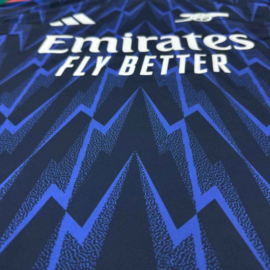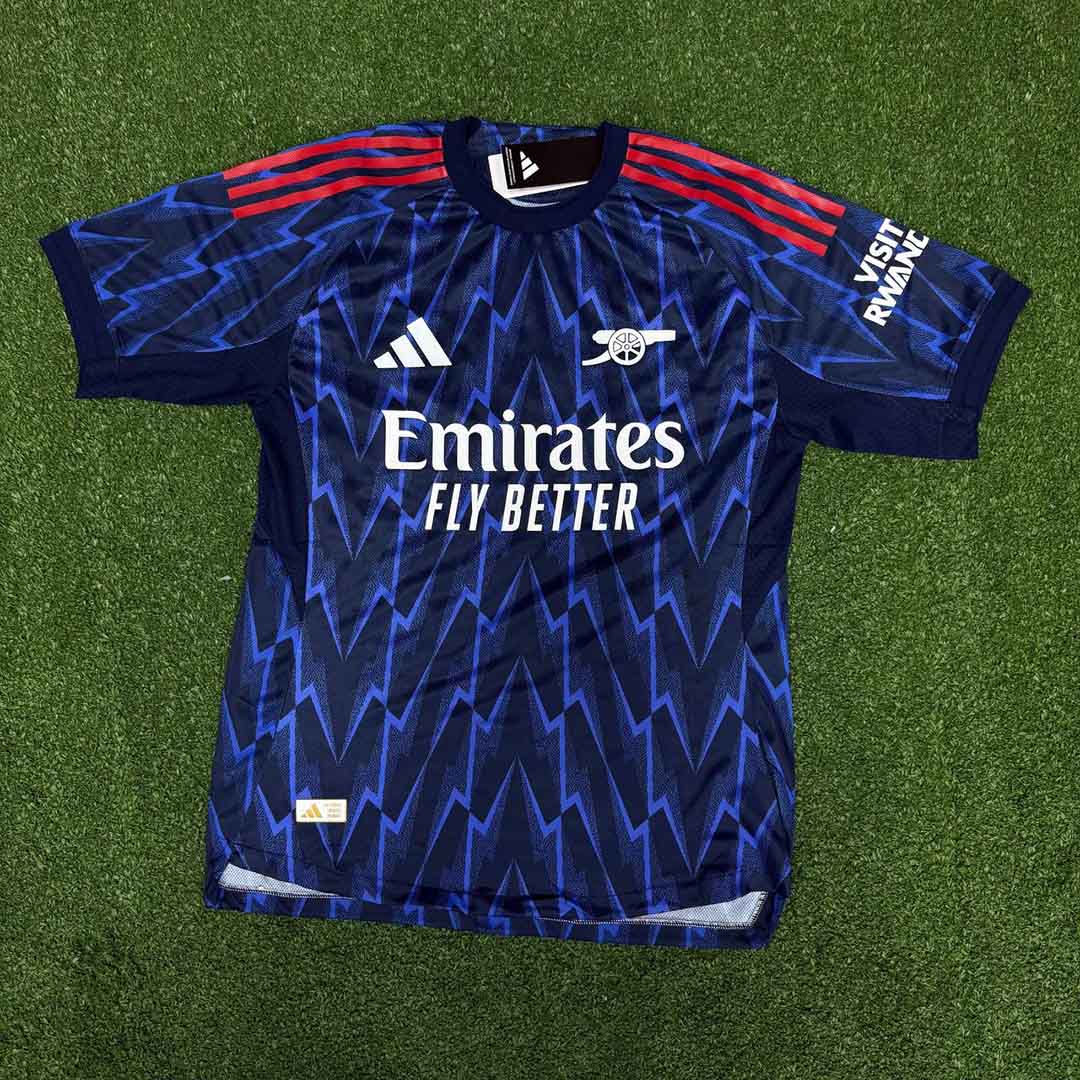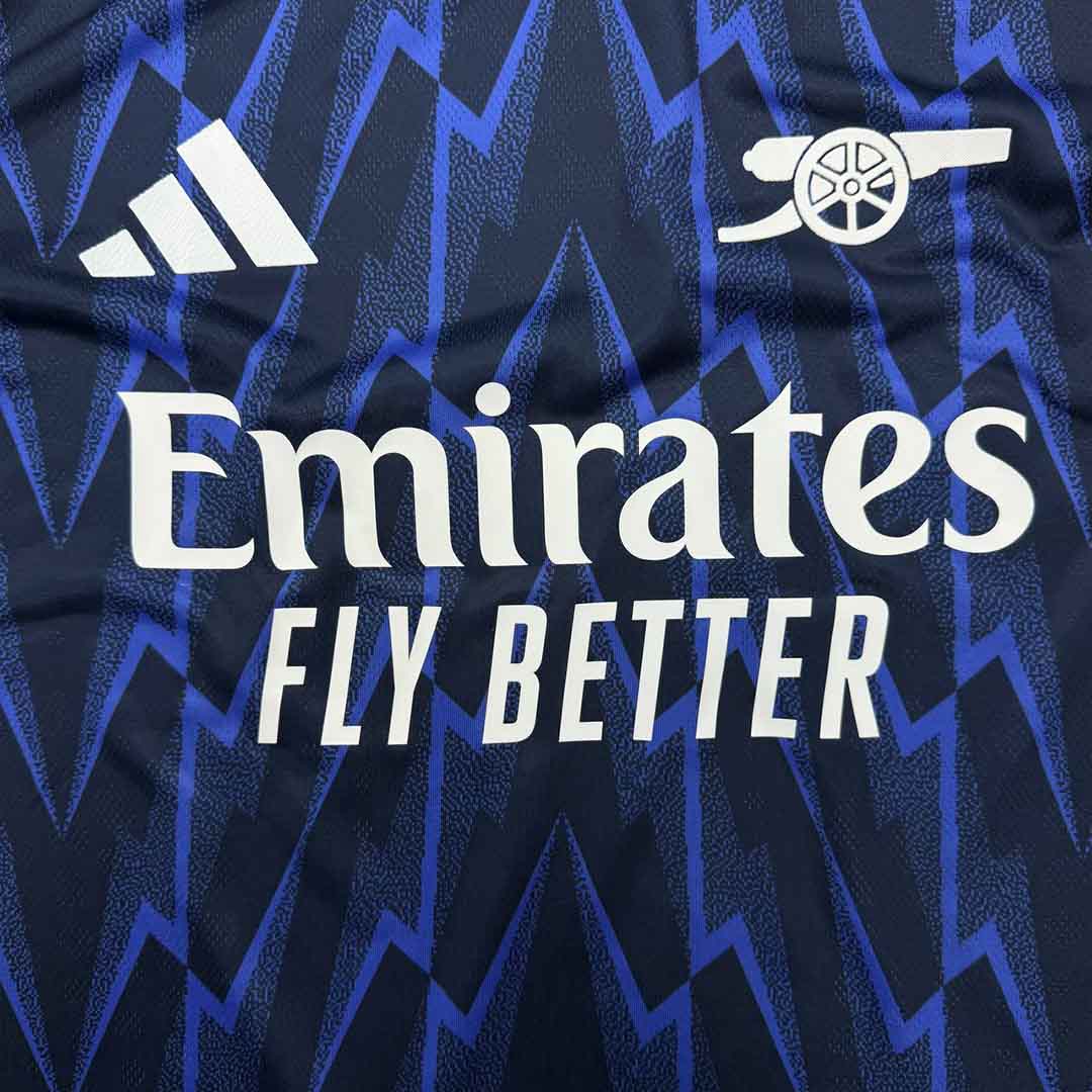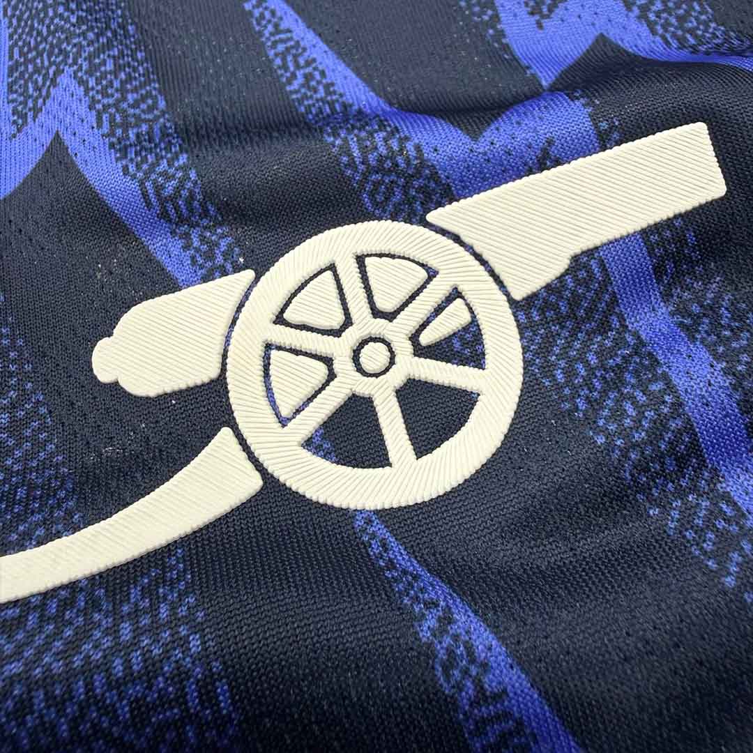 کیت دوم آرسنال 2025-2026 با رنگ زمینه سرمهای و با طراحی زیگزاگی آبی رنگ رونمایی شده است 🔵🔷. طرح زیگزاگی این لباس جلوهای از نماد رعد و برق باشگاه آرسنال است ⚡️🔥. ترکیب رنگ خطوط قرمز رنگ آدیداس روی آستین لباس، ظاهری شیک و جذاب به لباس داده است. در قسمت روی سینه پیراهن نیز نماد توپ جنگی آرسنال و لوگو جدید آرسنال وجود دارد. نمادهایی که کاملا با حس مدرن بودن طرح لباس هماهنگ هستند.