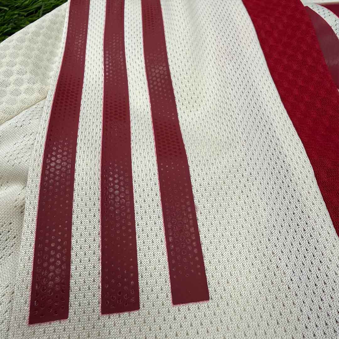 جنس پلیری کیت دوم لیورپول 2025-2026 آستین بلند، بسیار سبک، بادوام و کاملاً ضد تغرقه است 💨. استفاده از این جنس باعث میشود آستینبلند بودن کیت نهتنها محدودیتی ایجاد نکند، بلکه حس خنکی و تهویه مطلوب را حتی در زمان فعالیت بدنی فراهم کند. مقاومت بالای پارچه در برابر شستوشو نیز موجب میشود رنگ و فرم کیت برای مدت طولانی ثابت بماند.