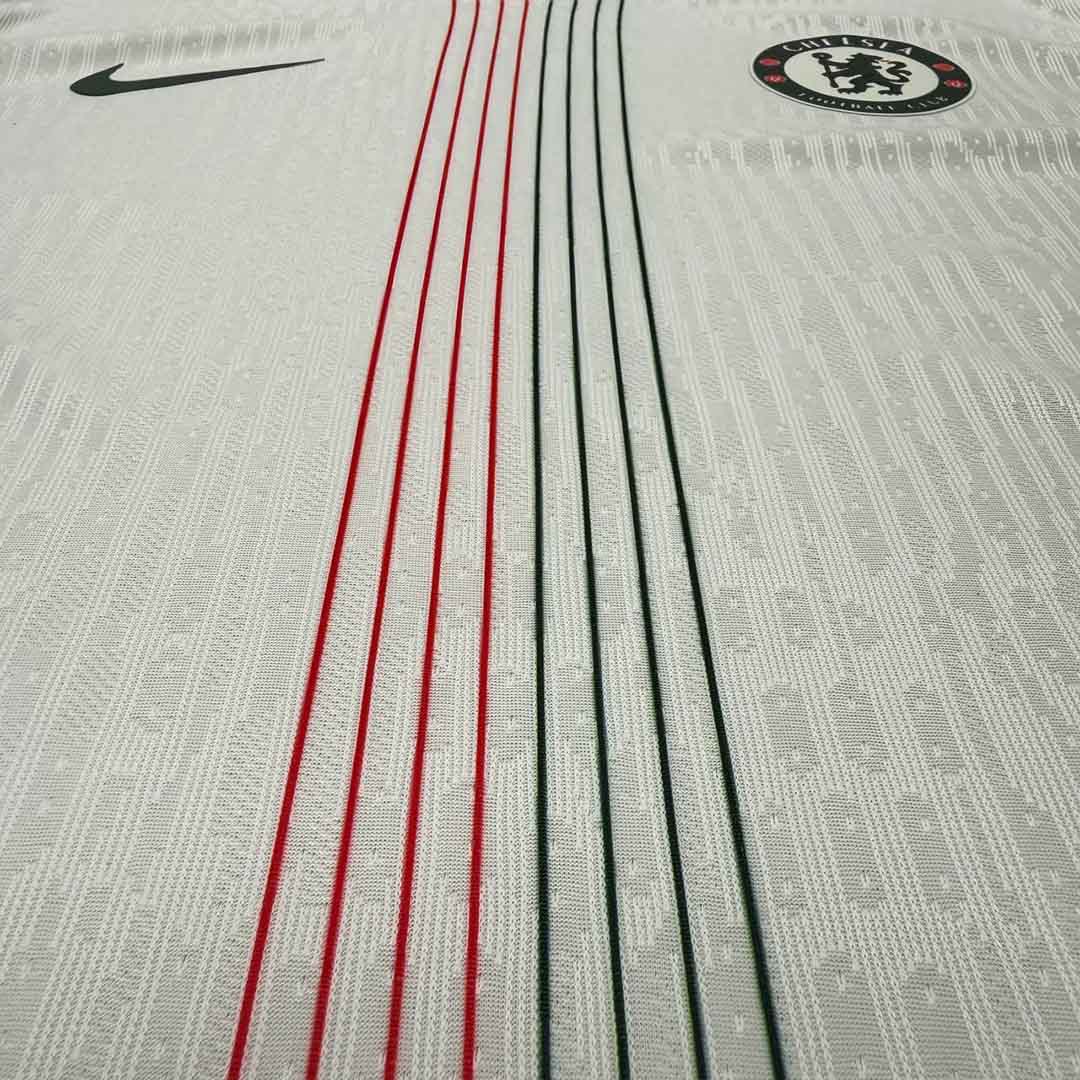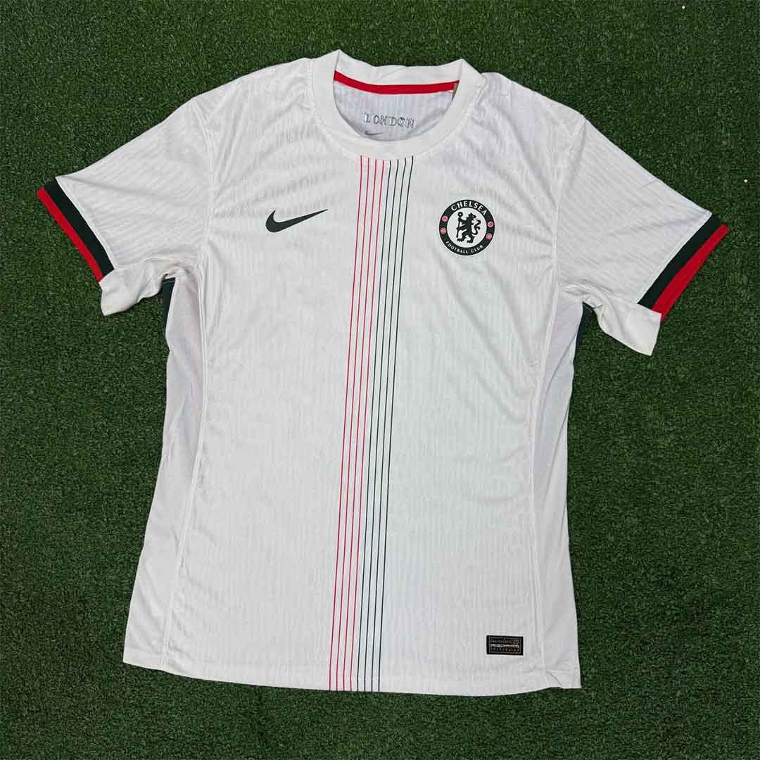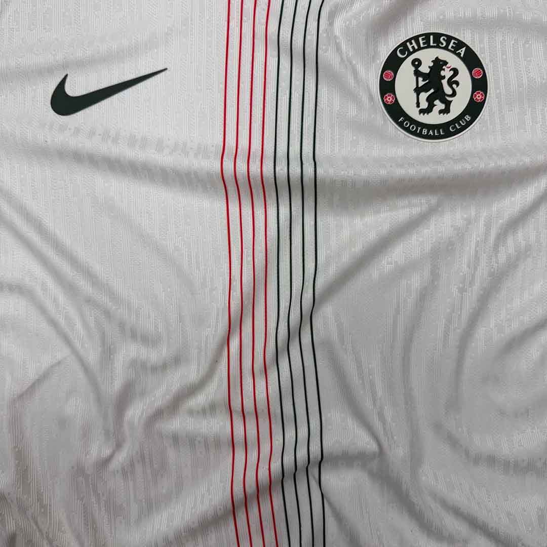 کیت دوم چلسی 2025-2026 در زمینه سفید استخوانی طراحی شده است. برند نایک با الهام از ساختار کیت دوم چلسی در فصل 1974-1975 توانسته در قالب خطوطی ظریفتر کیت کلاسیک چلسی را بازآفرینی کند. همچنان که طرح این کیت از خطوط سبز و قرمز نازک در وسط لباس تشکیل شده است. جزئیات دیگر این لباس از جمله، نوارهای سبز و قرمز سرآستین و رنگ خاص لوگوهای نایک و باشگاه جذابیت کار را چند برابر کرده اند💫.